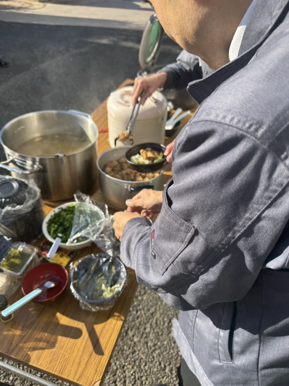 駐車場の一角から漂う、食欲を刺激するたまらない香り。 そこには、巨大な鍋を巧みに操る松永シェフの姿がありました。