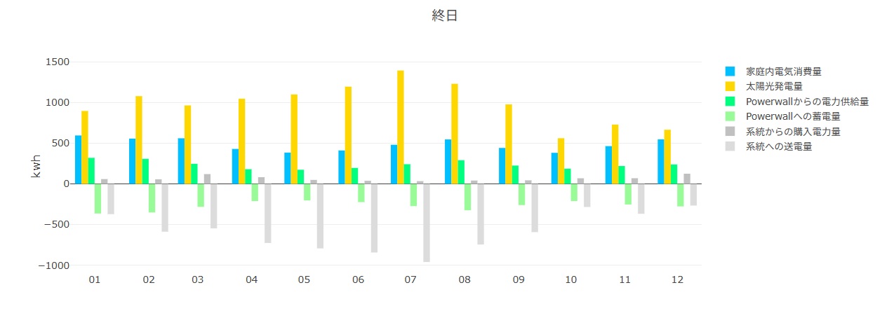 特に今回のような大容量蓄電池(Powerwall等)があれば、昼間に作った電気を夜までしっかり使い切れるため、ここまでの好成績が出せました。
