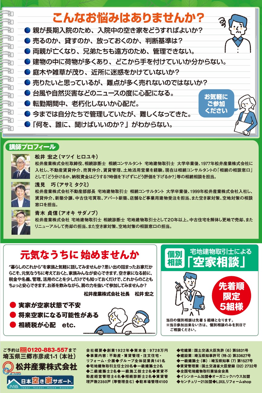 大切な資産を次世代へ円滑に引き継ぐために。埼玉新聞社後援の安心な環境で、「賢い空き家の取り扱い方」を一緒に学びましょう!
