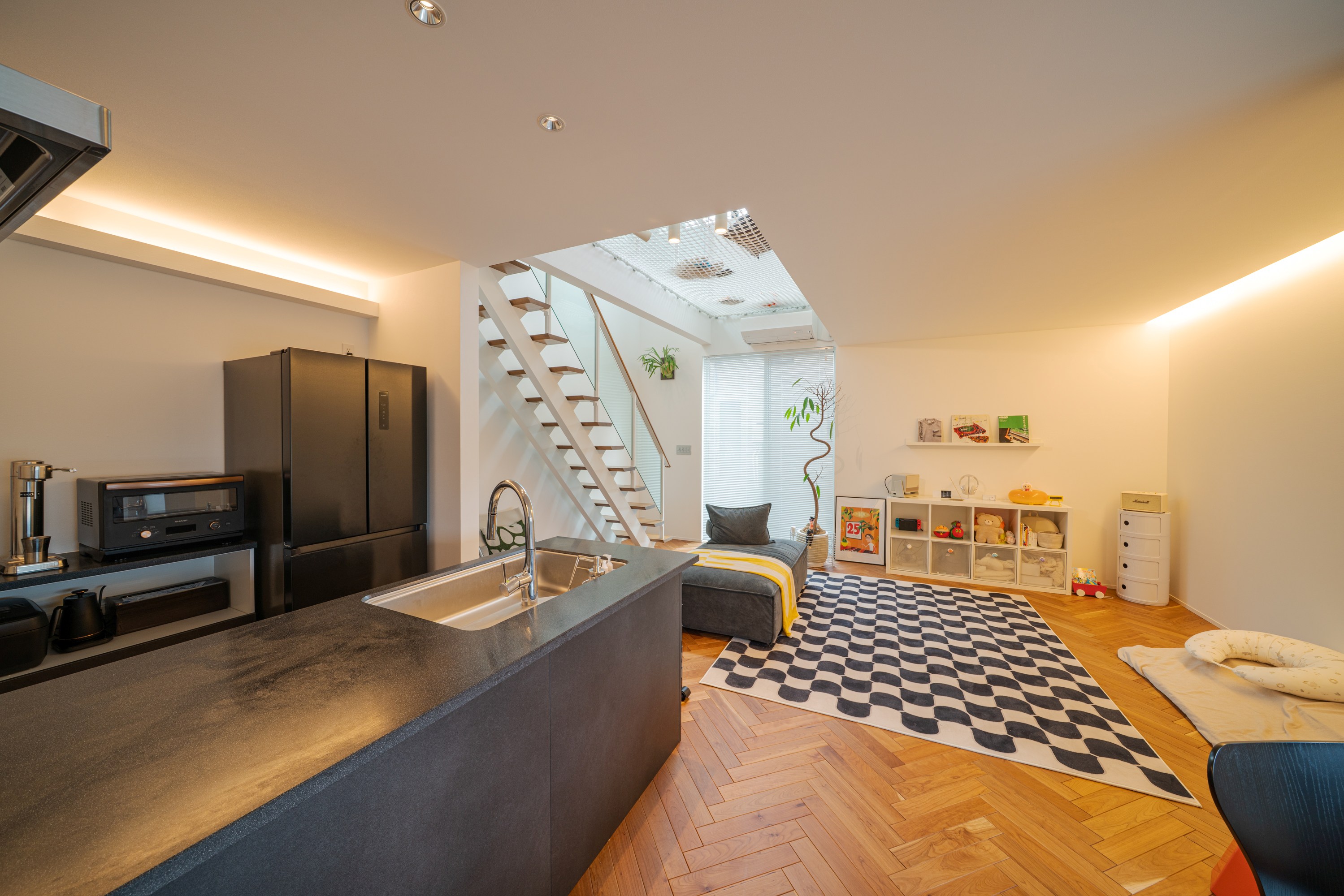 1. 家族の気配を結ぶ「吹き抜け」と「空中ネット」